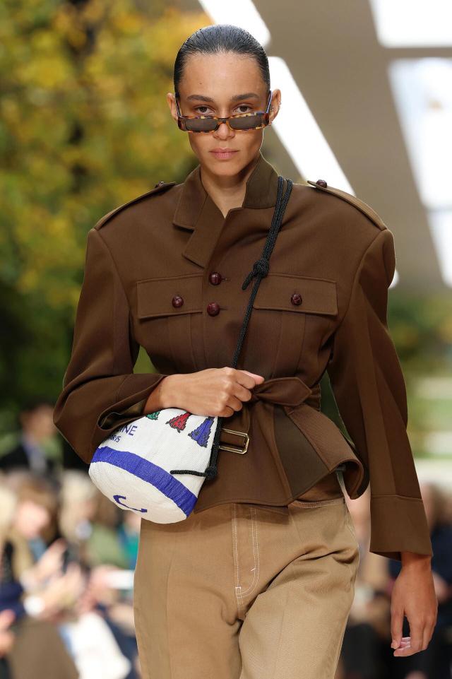 手袋依然延续着极简设计与实用主义,热气球形状的手袋和草编包奇趣感满满,托特包、手拿包与头盔、丝巾、外套在指尖和腕间玩味碰撞,覆盖了度假、通勤、晚宴等多元场景。